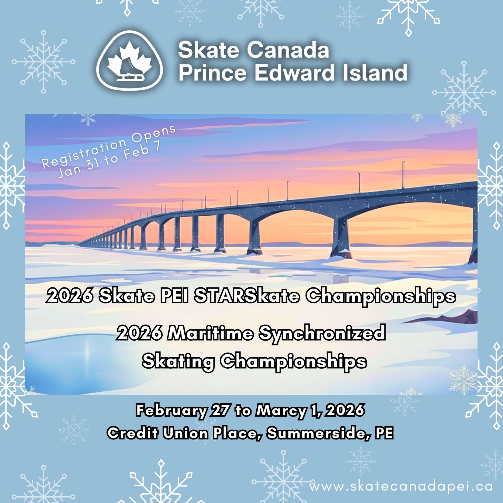 2026 PEI STARSkate Skating Championships open for PEI Skaters only: January 31 to February 7, 2026